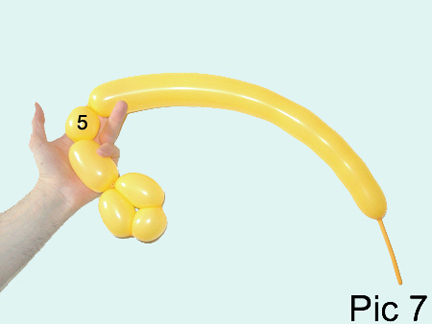 Inflate a balloon leaving a five—inch flat tail (Pic 1).