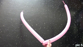 I am going to use the same weaving technique as in previously published instruction "Balloon candy cane". Tie nozzles of two balloons (pic 3).