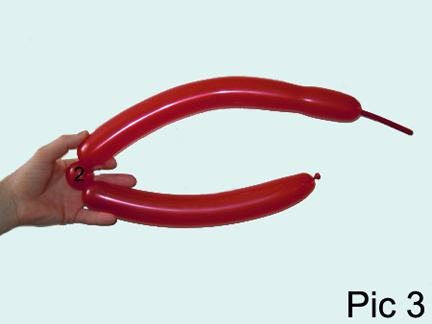 We are going to use a red balloon for the top of the hat and a white balloon for the base and the beard. Inflate the red balloon leaving a four—inch flat tail (Pic 1).